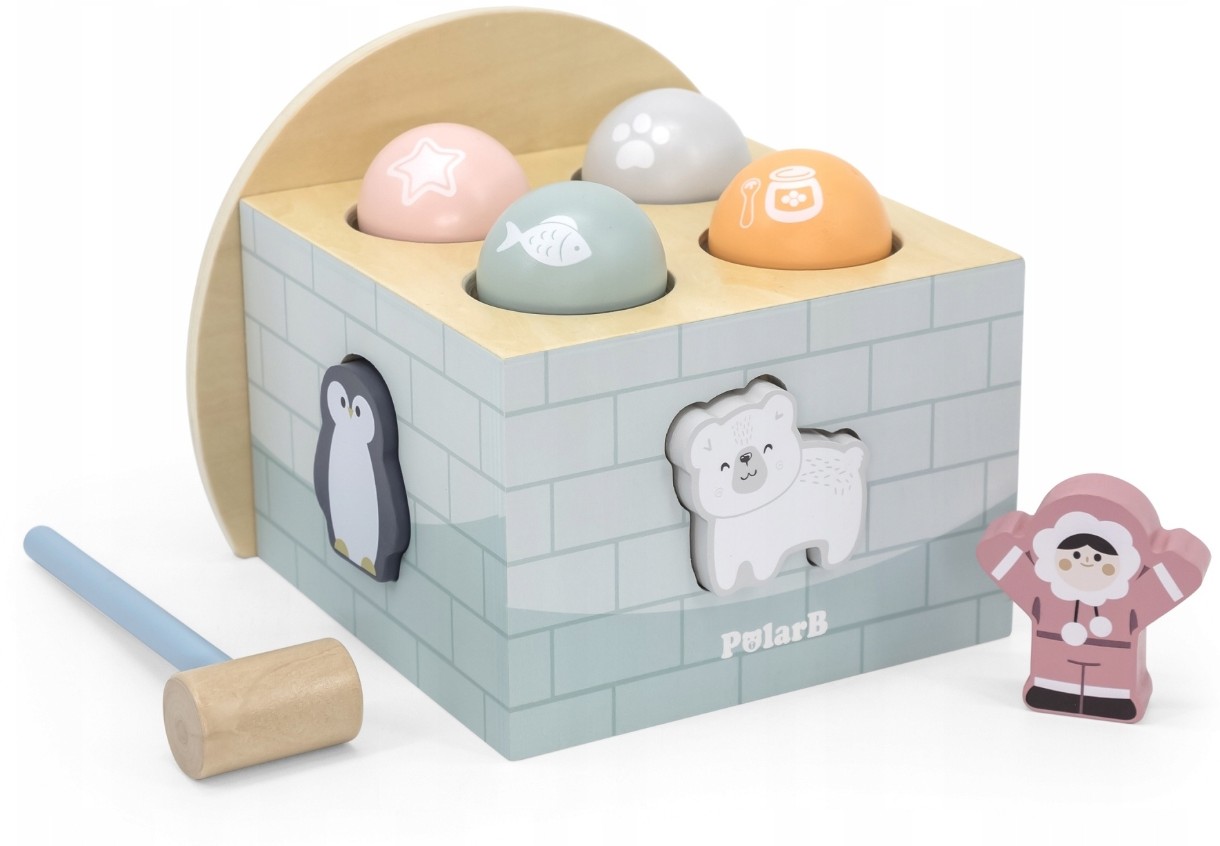 Jocul din lemn Viga Toys PolarB „Igloo” este o jucărie distractivă și educativă, care îi introduce pe cei mici în universul fascinant al regiunii nordice. Setul include 3 figurine de animale polare, 4 bile colorate și un ciocănel.