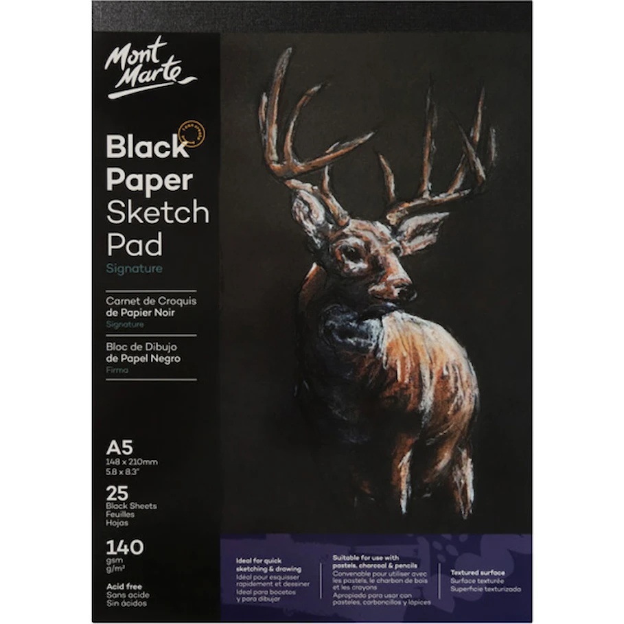 Albumul pentru schițe Mont Marte SketchPad este compus din 25 de foi de hârtie nemetalizată, netedă și texturată cu o densitate de 140 g/m². Hârtie universală de culoare neagră, care poate fi folosită cu o gamă largă de materiale de desen. Foile sunt legate cu o bandă, ceea ce permite îndepărtarea ușoară și rapidă a acestora, dacă este necesar. Artiștii începători vor găsi sfaturi practice utile pentru desen pe partea interioară a copertii.