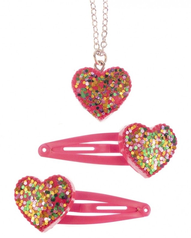 Setul este format din 2 agrafe de par magice si un colier pentru fetite. O nuanta stralucitoare ale bijuteriilor in combinatie cu o inima stralucitoare poate decora orice coafura.l. Setul de bijuterii Sparkle My Heart va sublinia individualitatea si creativitatea micutei printese. Cu ajutorul acestor bijuterii copilul se va simti mult mai increzator in sine.