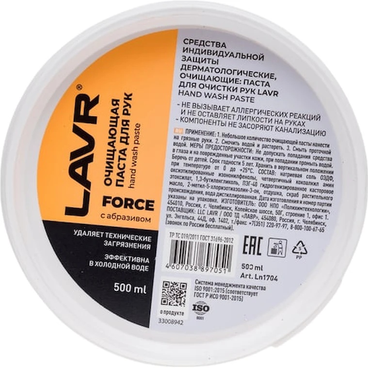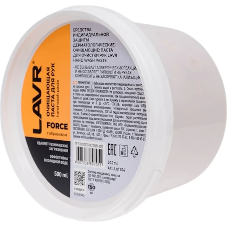 Curăță pielea mâinilor de contaminanțe tehnice complexe: uleiuri, lubrifianți, cerneală tipografică, grafit, adeziv pentru plăci, bitum, funingine, praf de producție și alte contaminanțe.