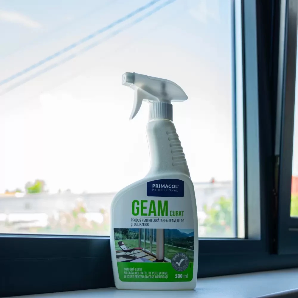 Produs special conceput pentru curățarea geamurilor, oglinzilor, vitrinelor, suprafețelor din sticlă sau lucioase. Îndepărtează rapid murdăria, urmele de grăsime, amprentele și lasă o strălucire impecabilă.