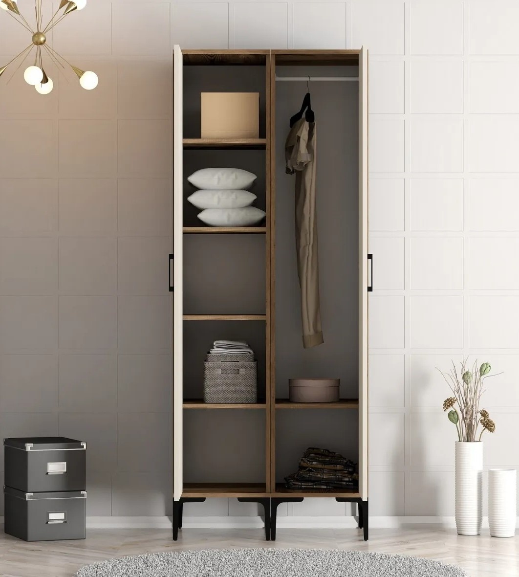 Acest dulap ajută la menținerea dormitorului ordonat, transformând organizarea obiectelor într-o activitate simplă și plăcută.