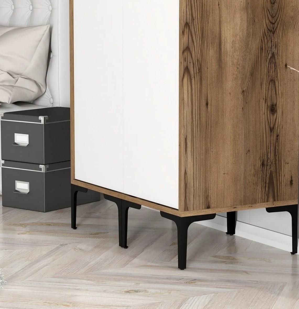 Dulapul este fabricat din panouri de particule acoperite cu 100% melamină. Grosimea de 18 mm asigură rezistență și durabilitate, fiind o investiție fiabilă pentru mulți ani.