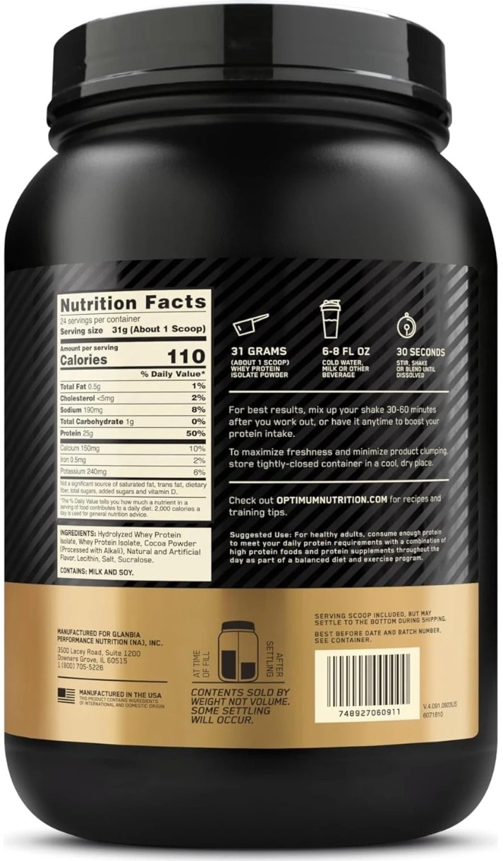 Proteină Optimum Nutrition Gold Standard 100% Isolate Chocolate Bliss 744g