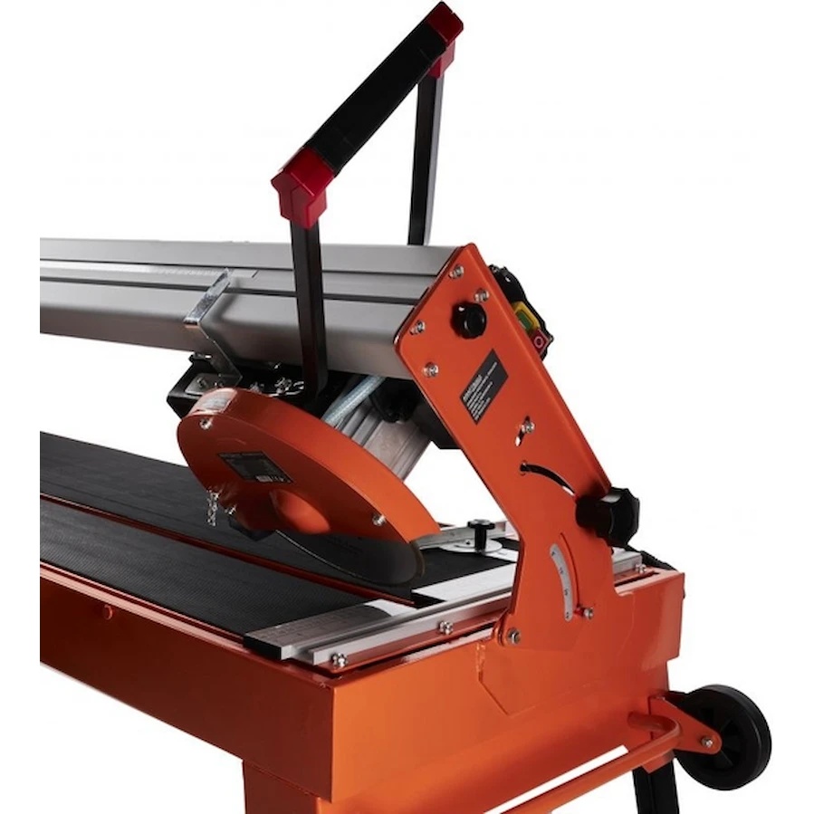 KD1372 de la Kraft&Dele — un instrument profesional pentru tăierea precisă a tuturor tipurilor de plăci, inclusiv gresie porțelanată, marmură și plăci de piatră. Datorită unghiului de înclinare reglabil și a scalei graduată, tăierea poate fi efectuată atât standard, cât și unghiular, precum și tăiere romboidală.