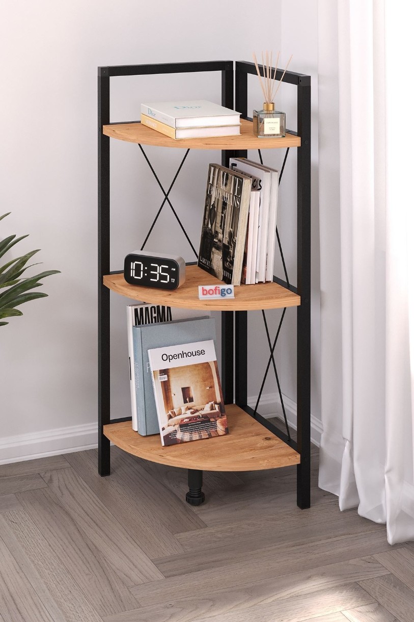 Raftul de colț Bofigo 15-10-02 este o soluție compactă și funcțională pentru organizarea spațiului. Cadrul este realizat din metal cu acoperire pulbere, iar polițele din PAL robust, oferind rezistență, stabilitate și durabilitate. Datorită formei în colț, raftul folosește eficient spațiul disponibil, lăsând mai mult loc liber în cameră. Mai multe niveluri permit depozitarea cărților, obiectelor decorative, cutiilor, accesoriilor sau lucrurilor uzuale. Este o piesă practică și bine construită, care se va integra ușor în decorul living-ului, dormitorului, holului, biroului sau debarei.