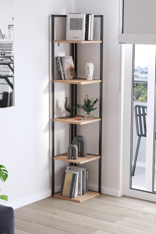 Etajeră de colț cu 5 rafturi este o soluție modernă și practică pentru organizarea eficientă a spațiului în living, birou sau dormitor. Designul de colț permite utilizarea optimă a spațiului și transformă colțurile libere în zone funcționale și decorative.