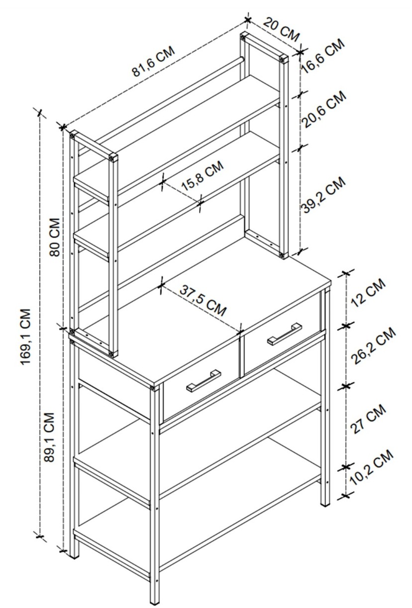 Raft de bucătărie Bofigo cu 2 sertare și 5 rafturi