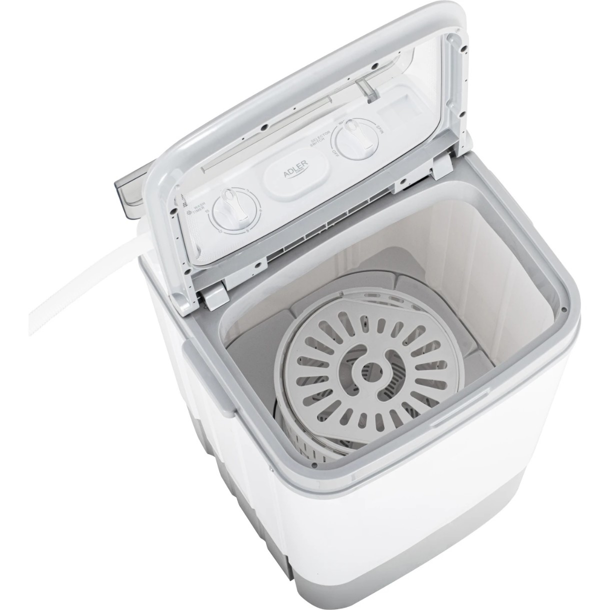 Datorită funcției separate de spălare și centrifugare, puteți să vă reîmprospătați hainele rapid și fără complicații, fără a depinde de spălătorii. Cu ajutorul temporizatorului prietenos cu utilizatorul, controlați ciclul de spălare în funcție de cantitatea de rufe, iar dimensiunile compacte facilitează depozitarea și transportul.