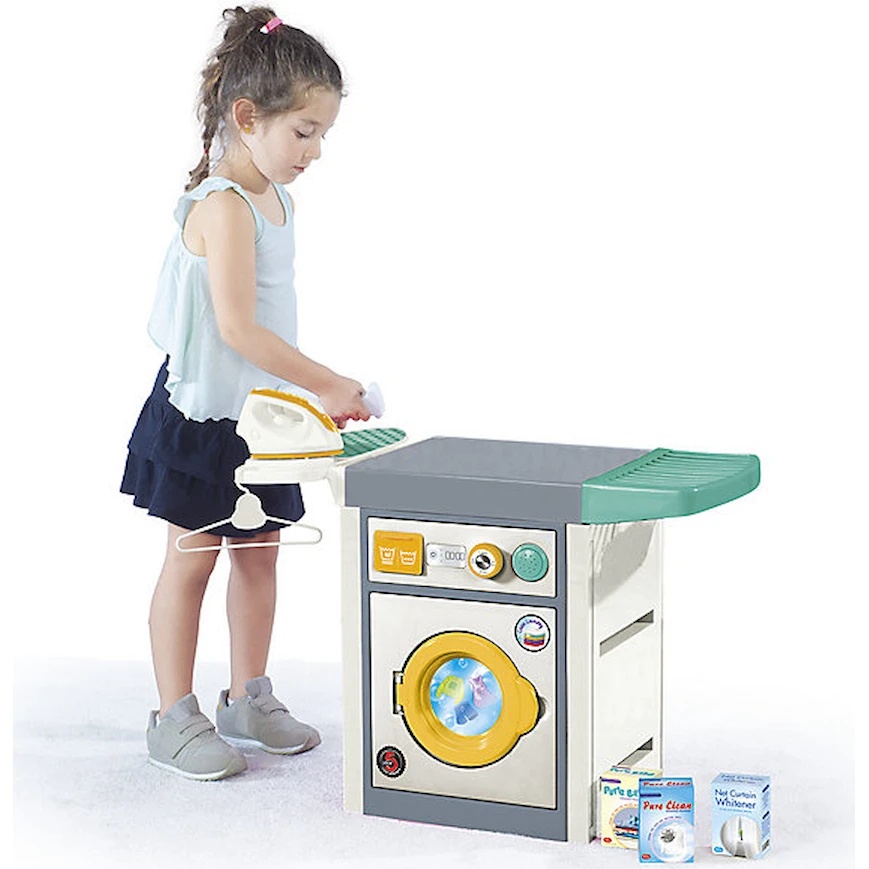 Setul include o mașină de spălat cu capac care se deschide și accesorii pentru spălat, permițând copilului să se bucure de jocuri de rol interactive. Înălțimea este perfectă pentru cei mici, iar construcția solidă asigură durabilitate și siguranță.