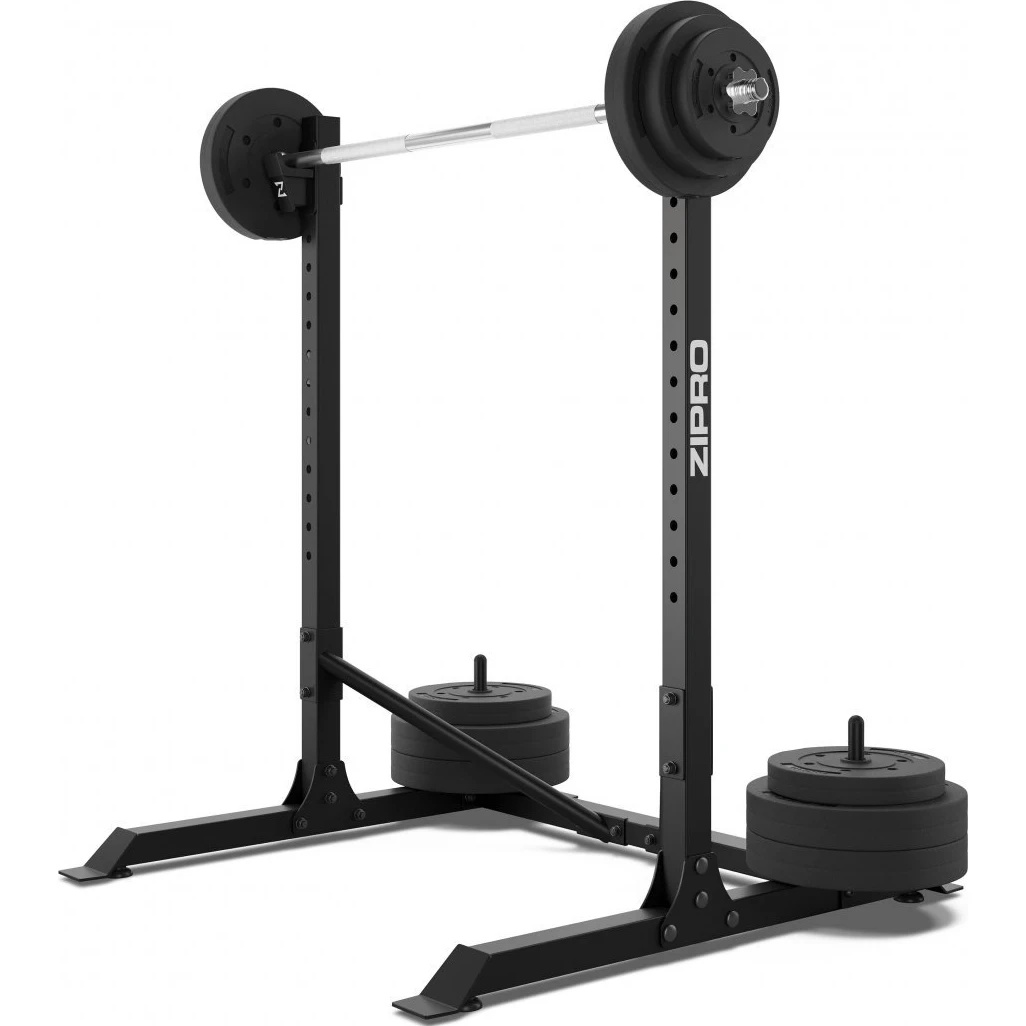 Fie că le folosești pentru împins la bancă, genuflexiuni sau îndreptări, suporturile reglabile ZIPRO oferă siguranță și stabilitate la fiecare exercițiu.