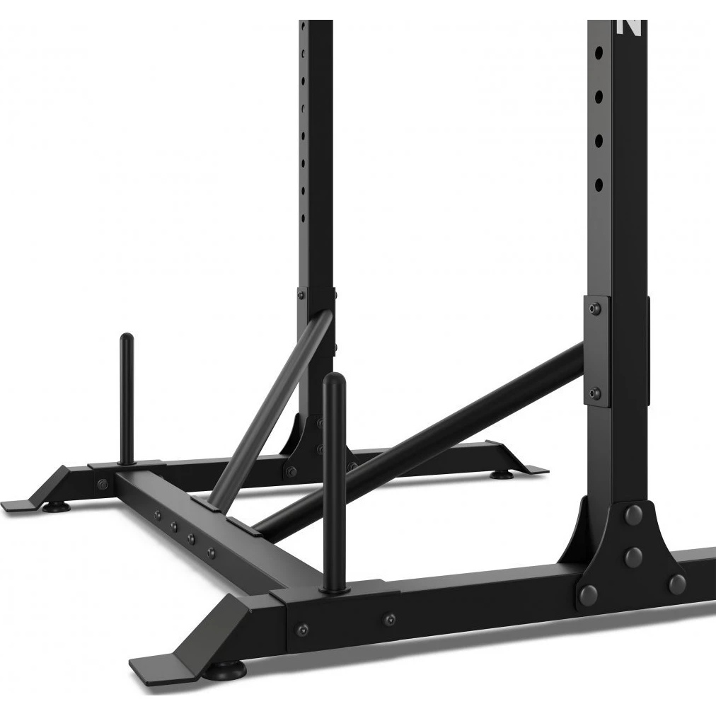 Construcția solidă din oțel și baza lată garantează echilibru perfect, iar reglarea distanței dintre suporturi îți permite adaptarea la orice tip de antrenament.