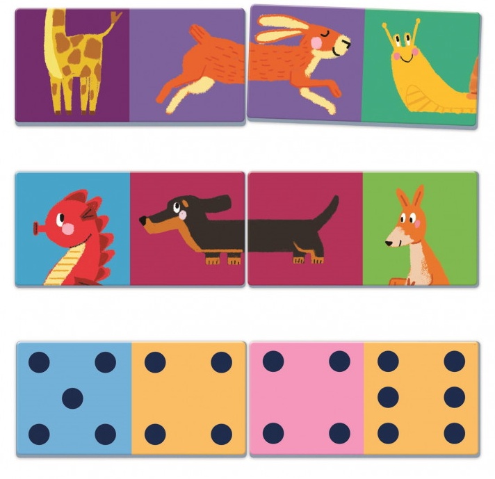 Un domino special cu 28 de plăci, care ajută la învățarea animalelor și a numerelor prin imagini vii. Copilul compune figurile animalelor și își dezvoltă gândirea matematică, prin asocierea numerelor cu cantități.