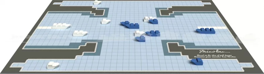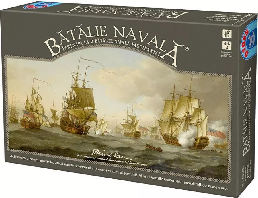 Jocul original românesc Bătălie navală este conceput de faimosul inventator de jocuri, Ioan Nicolau, pentru a vă testa logica, puterea de analiză și abilitățile observaționale. Bătălie navală este un joc de strategie pentru 2 jucători. Aceștia au la dispoziție câte o armată cu 7 vase (1 crucișător, 2 distrugătoare și 4 vedete) cu care pot înainta pe tabla de joc spre cheiul celuilalt jucător, având ca scop pătrunderea cu „forțele militare” în centrul portului acestuia. Cele trei tipuri de vase au lungimi, valori și posibilități de mutare diferite. Acestea pornesc de pe pozițiile start corespunzătoare fiecăreia, marcate pe tabla de joc. Jucătorii au multe modalități de manevrare pentru a ataca și a „scufunda” vasele oponentului.