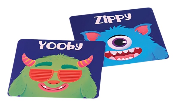 In set1 tablă magnetică cu două fețe, 10 cărți cu două fețe cu indicații vizuale, 41 de elemente magnetice