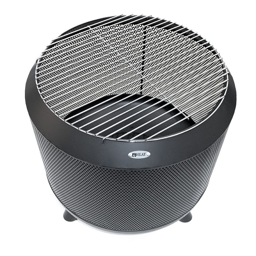 HEAT Outdoor Living Fire Drum este un șemineu de grădină rotund și elegant, cu mici orificii pe toată suprafața, care oferă o vedere plăcută asupra flăcărilor jucăușe și te protejează de particulele săritoare de foc. Designul său este inspirat de vechiul tambur de mașină de spălat, pe care pasionații de bricolaj îl foloseau pentru a-și construi propriul coș de foc.