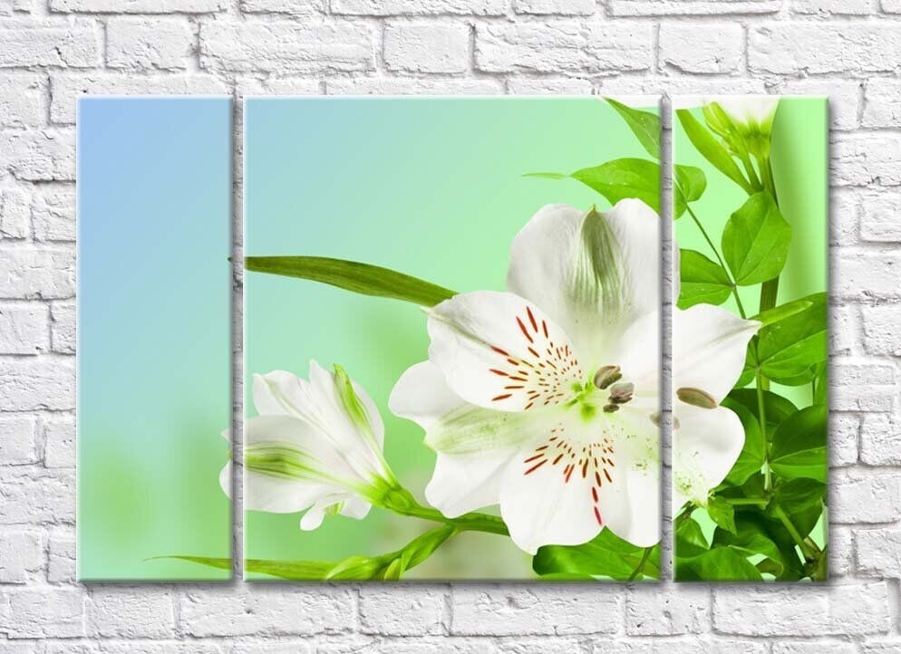 Pictură Gallerix White alstroemeria flower and green leaves (500777)