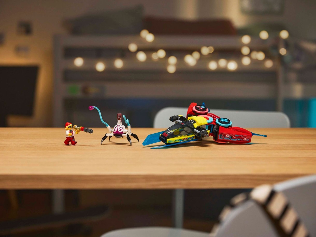 Micii visători se distrează construind modelul de bază al controlerului de joc înainte de a-l transforma într-un speeder de joc, care este un avion de jucărie inspirat de jocurile video, sau într-un elicopter de joc, care este un elicopter de jucărie inspirat de jocurile video. Ambele versiuni au 2 lansatoare de piroane și o cabină de pilotaj care se deschide, cu mult spațiu pentru o minifigurină. Acțiunea prinde viață datorită lui Cooper, care vine cu un accesoriu pentru armă și o figurină Cyberbrain Spider, care vine cu 2 cabluri pentru a scurge apa din vehiculele lui Cooper.