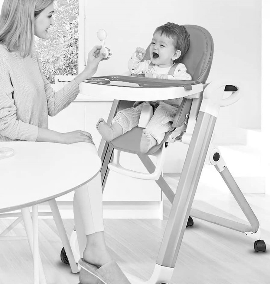 Scaunul înalt IVOLIA este un transformator care se poate transforma pe măsură ce copilul tău crește. Sistem de franare STOP&GO.