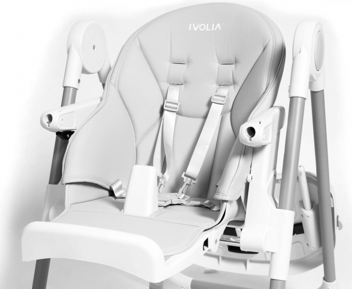 Scaunul înalt IVOLIA este un transformator care se poate transforma pe măsură ce copilul tău crește: până la 6 luni - este un șezlong; de la 6 luni - un scaun înalt pentru hrănire, joacă și odihnă; de la 12 luni - un scaun înalt fără tavă, care poate fi așezat la masă pentru a lua masa cu toată familia.