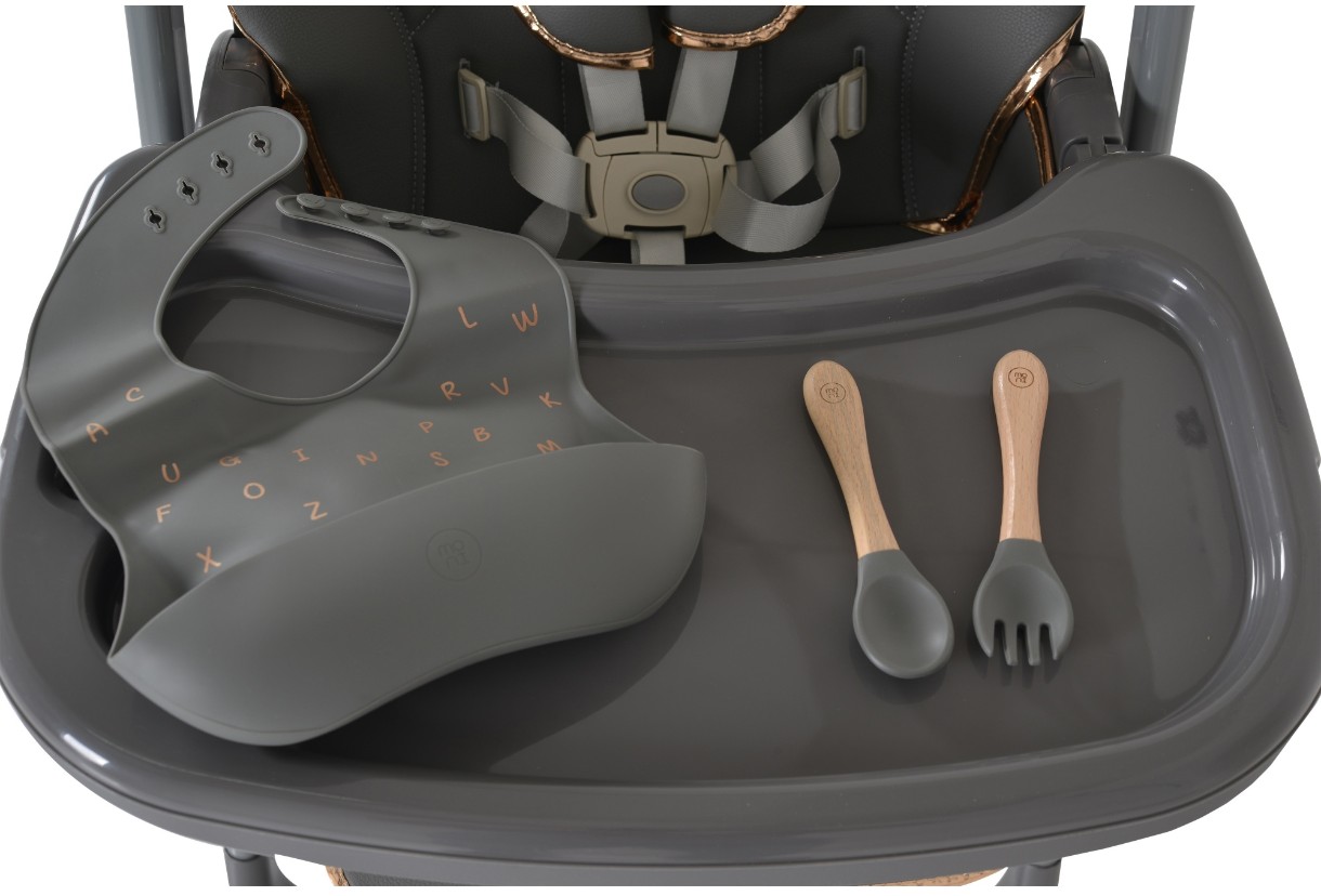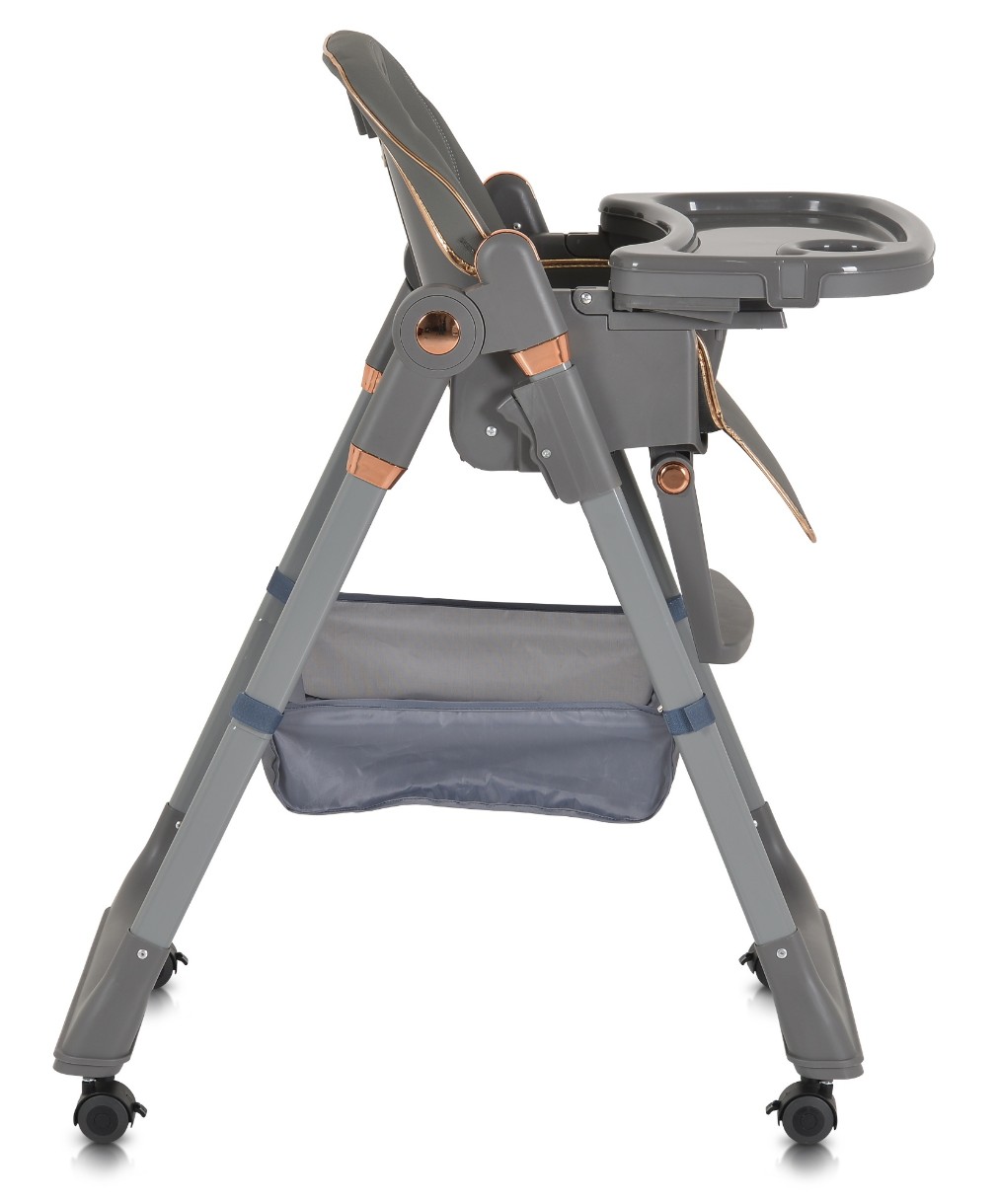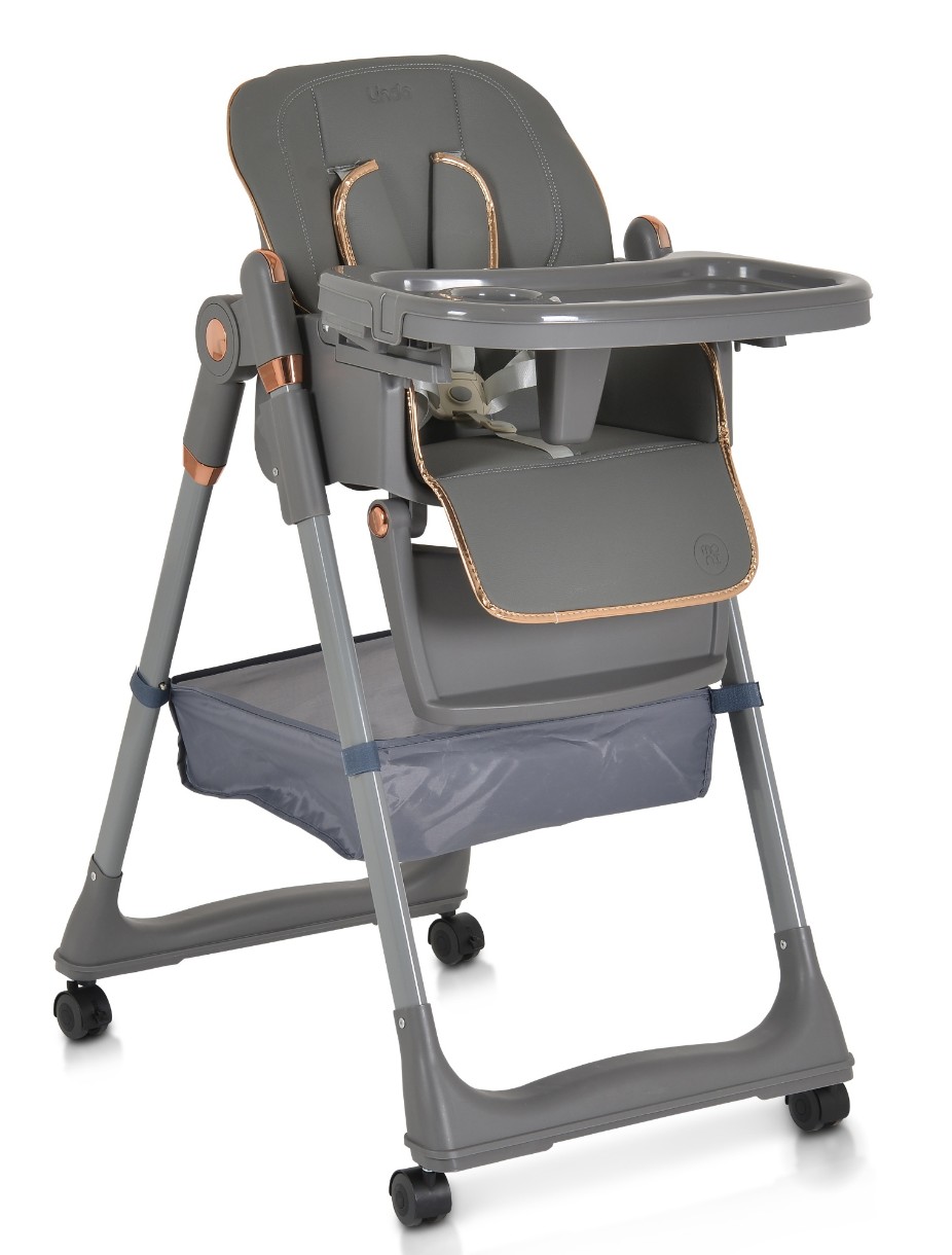 Scaunul înalt Moni Lindo Beige este compatibil cu diferite tipuri de mese datorită ajustării pe înălțime.