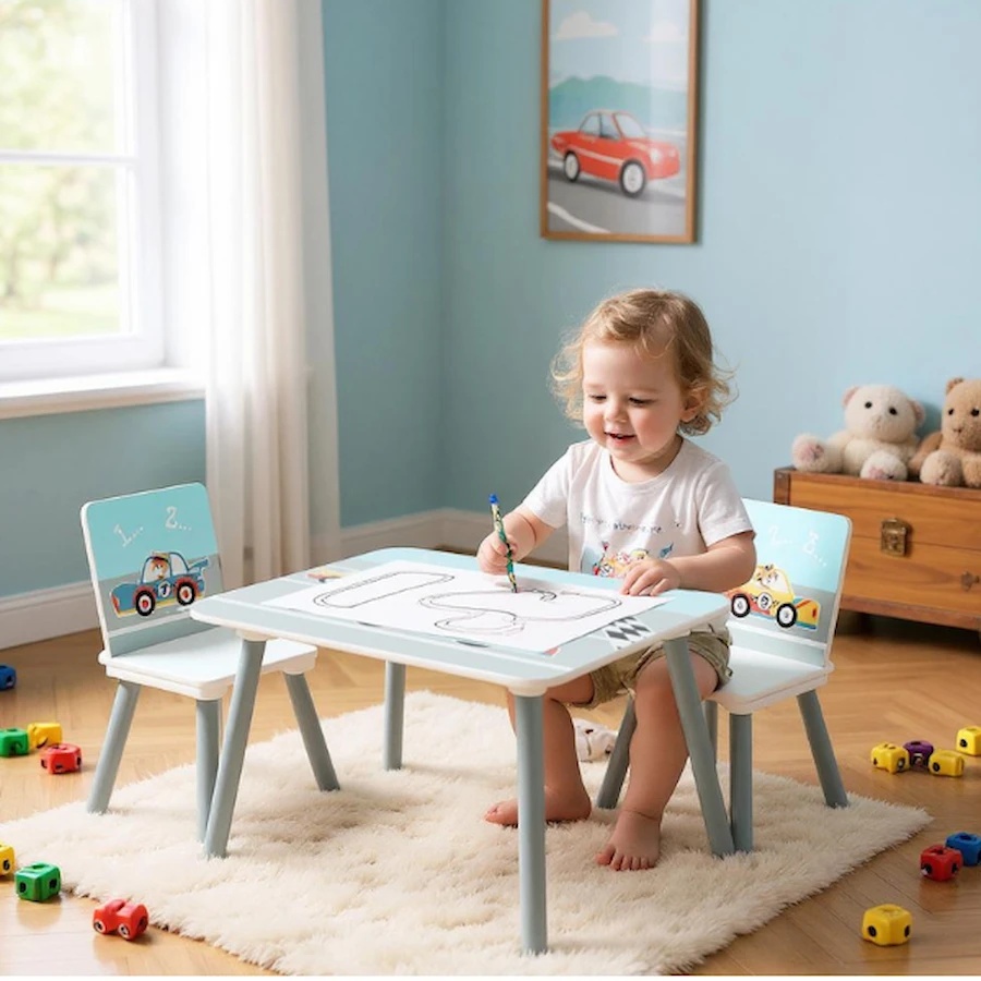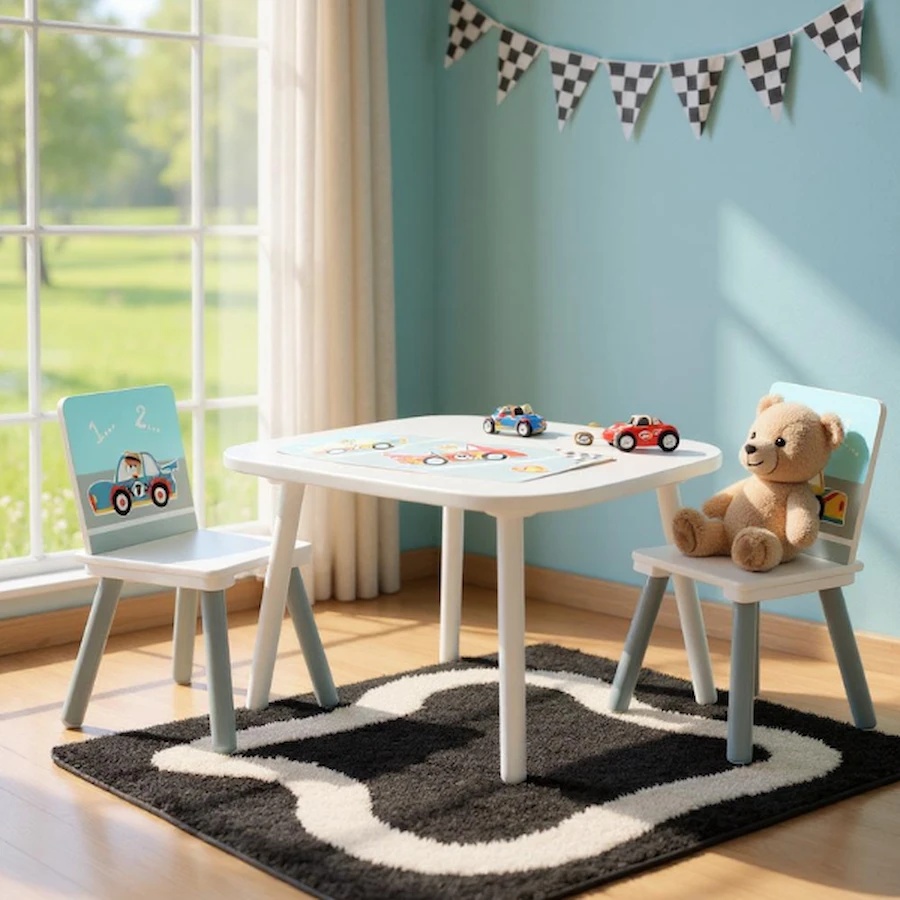 • Set complet – include o măsuță și două scaune, ideale pentru activități educative, desen sau joacă.