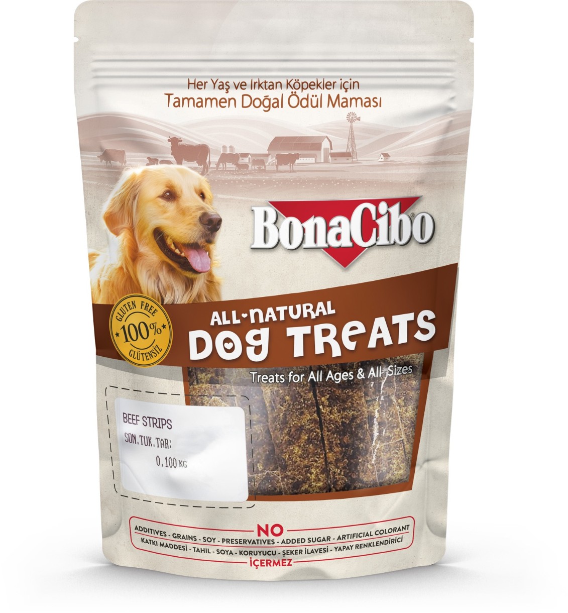 Snackuri pentru câini BonaCibo Beef Strips 100g