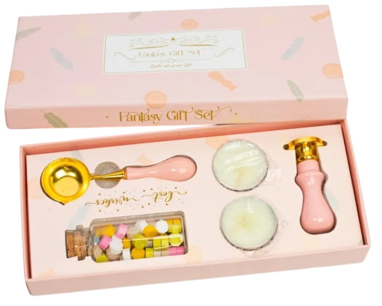 sigiliu, ceară de etanșare, 2 lumanari, linguriţă