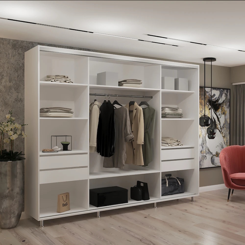 Dulap cu uşi glisante My-Style Mirror 260x230x60 White (C26H3M01U03)