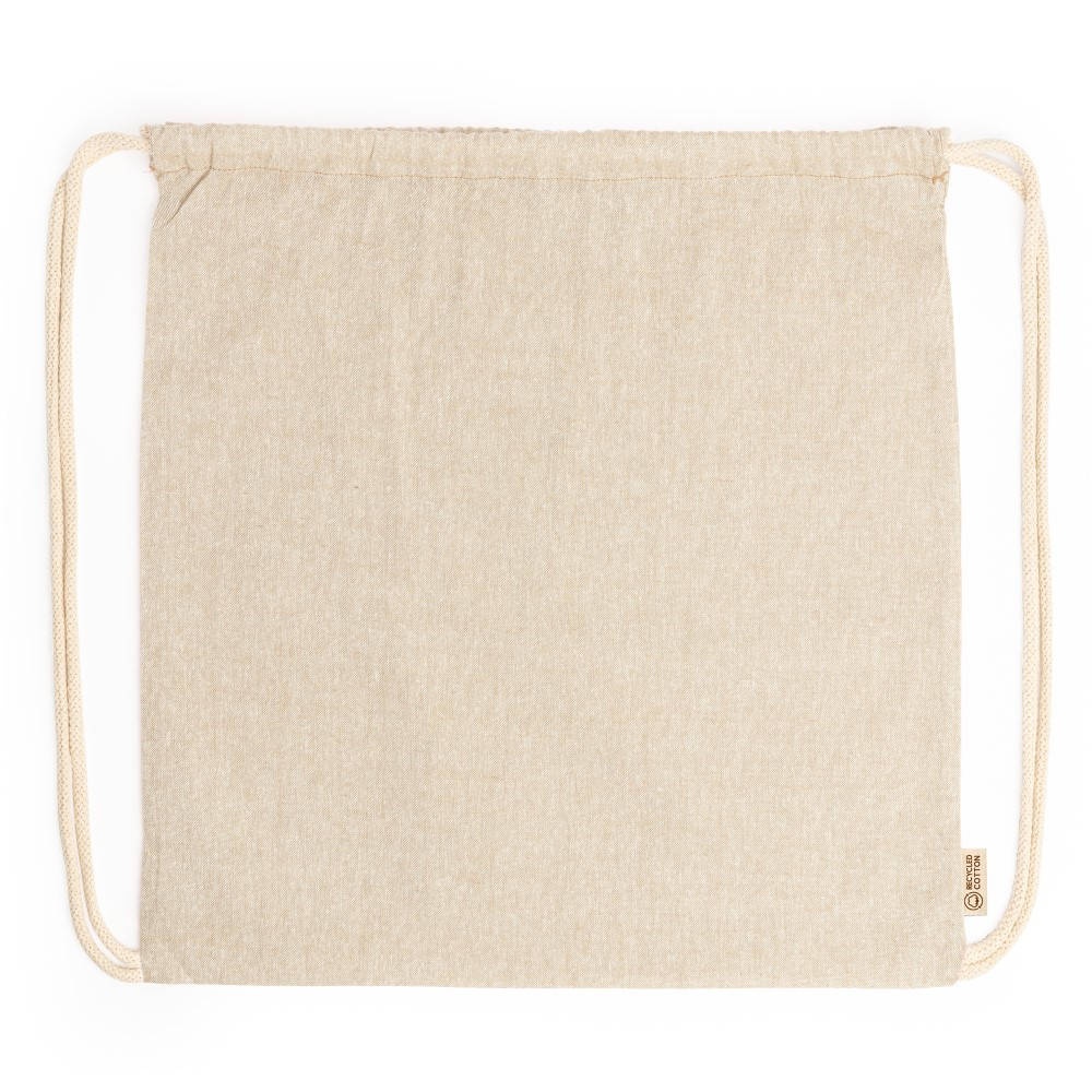 Rucsac cu șnur de strângere, confecționat din bumbac reciclat de 120 g/m², cu finisaj melanj și șnururi în culori naturale. Disponibil în diverse culori.