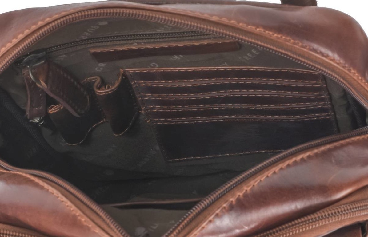 Geanta Greenburry Rugged (1303-25) combină stilul cu funcționalitatea. Este realizată din piele naturală de calitate, care devine mai frumoasă și mai moale pe măsură ce o folosești. Are un compartiment principal cu fermoar pentru siguranța obiectelor tale și buzunare practice pentru telefon, portofel sau alte lucruri esențiale. Clapeta frontală se închide cu clipsă magnetică, oferind acces rapid. Cureaua reglabilă permite să porți geanta pe umăr sau crossbody. Designul clasic și culoarea caldă a pielii fac din această geantă un accesoriu rezistent și elegant pentru oraș sau pentru viața de zi cu zi.