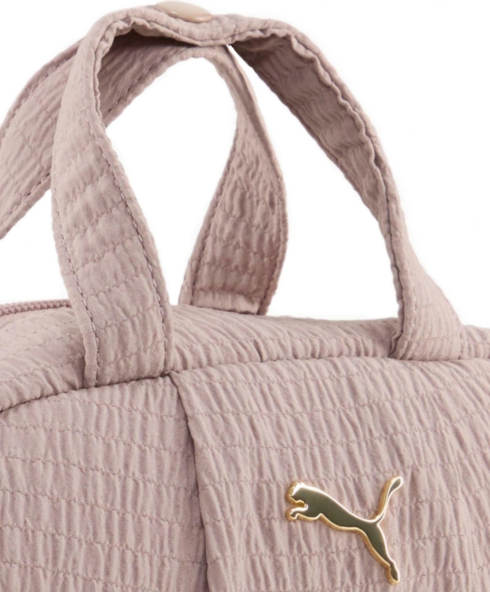 Logo-ul metalic PUMA Cat de pe partea frontală subliniază caracterul premium și recunoașterea colecției. Materialele sunt plăcute la atingere și rezistente pentru utilizarea zilnică. Geanta este realizată din cel puțin 90% materiale reciclate.