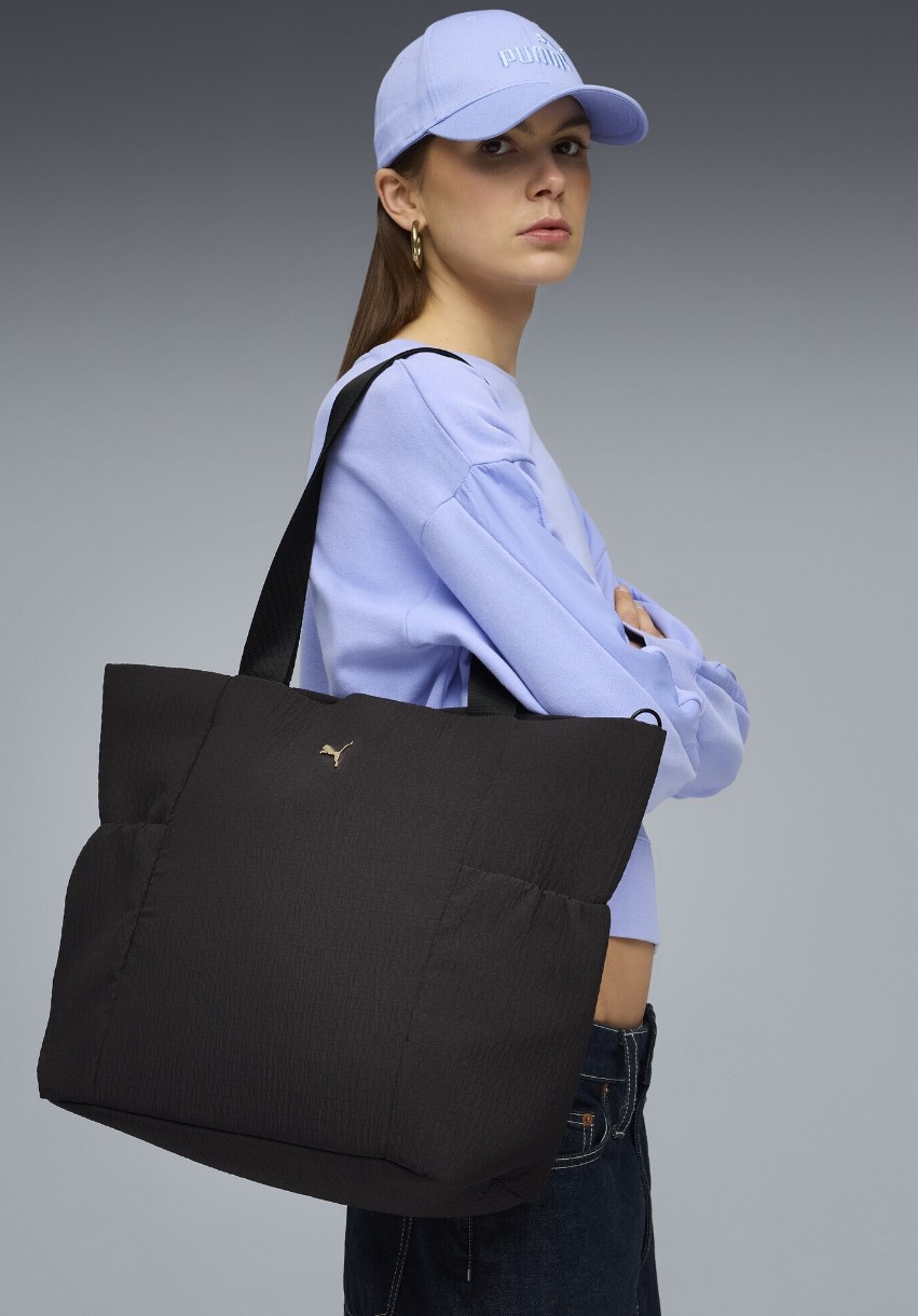 Puma Up Puma Black este o geantă shopper modernă și practică, concepută pentru utilizare zilnică, cumpărături sau activități urbane. Are un volum de 19 litri și oferă suficient spațiu pentru obiectele esențiale. Compartimentul principal este încăpător și se închide cu fermoar, iar buzunarele laterale permit acces rapid la lucrurile mici. Geanta este realizată din materiale durabile, în mare parte reciclate, și dispune de mânere rezistente, confortabile pentru purtare pe umăr sau în mână.