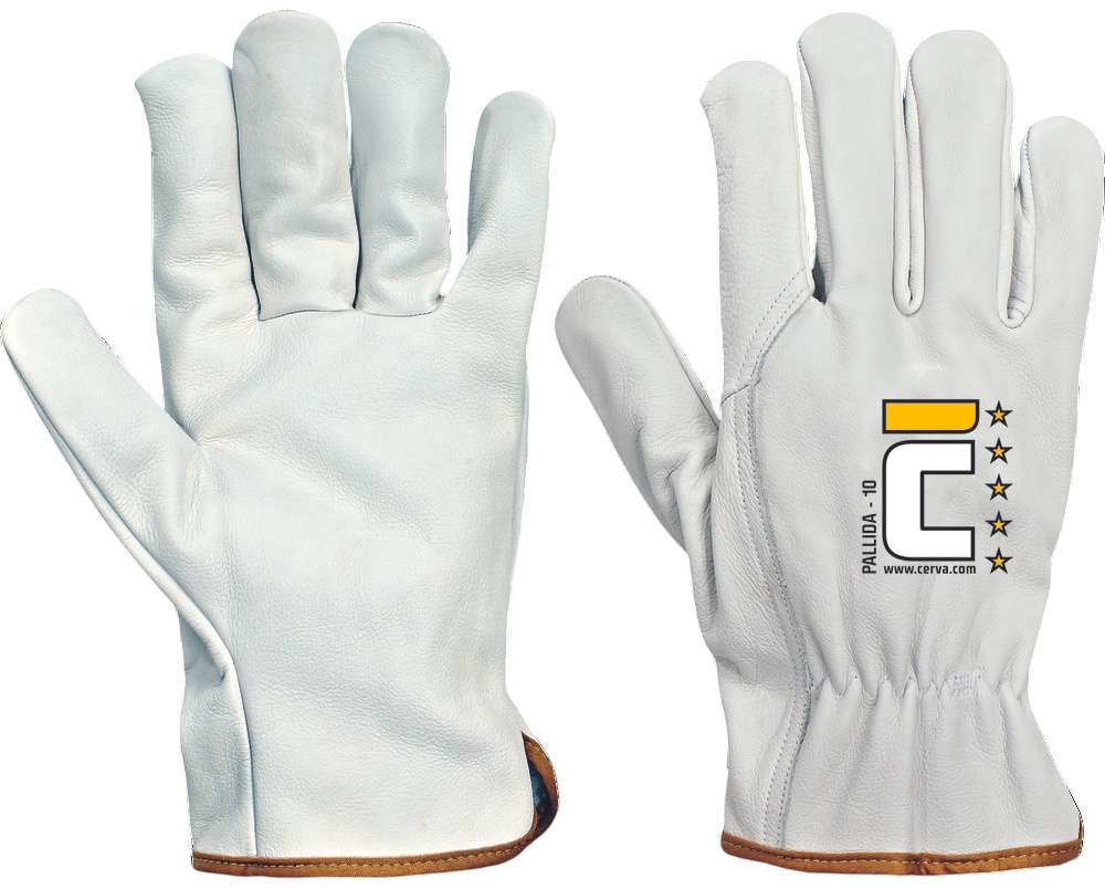 Mănușile Cerva Pallida sunt confecționate din piele fină gri de vacă granulată, inclusiv manșeta tot din aceeași piele. Designul este „Drivers”, iar manșeta este slip-on. Respectă standardele EN ISO 21420 și EN 388 (2131X), fiind destinate utilizării în inginerie. Aceste mănuși oferă confort, potrivire bună și protecție sigură a mâinilor în diverse activități profesionale.