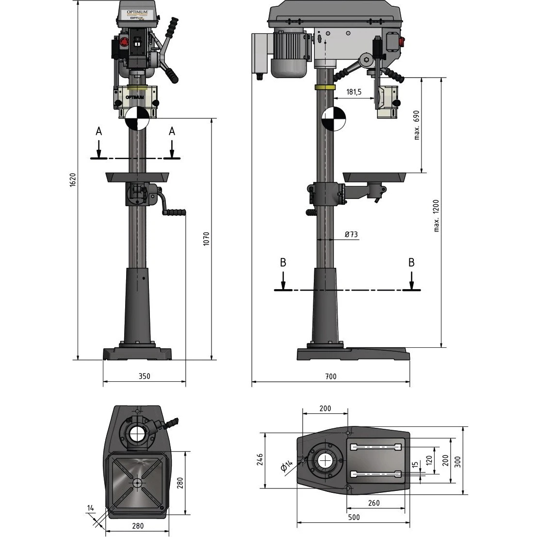 Mașină de găurit cu coloană Optimum DQ 25 (3191047)