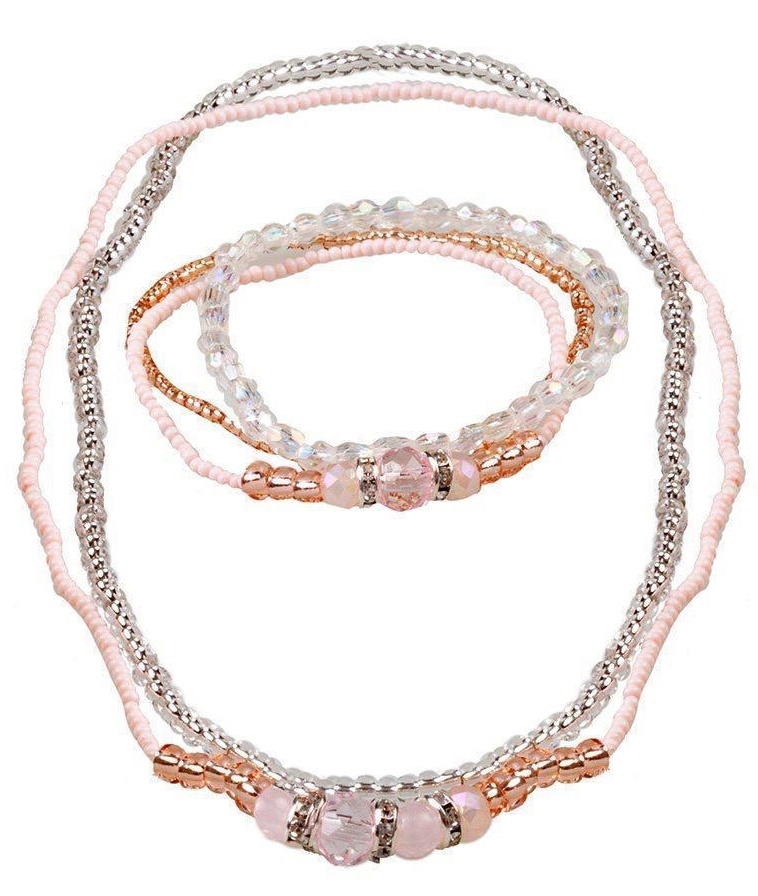 Bijuteriile laconice si simple si-au facut loc in garderoba pentru copii! Setul este format din: trei bratari, doua margele. Colierele si bratarile sunt realizate din margele in nuante argintii si aurii, completate de margele roz si aurii moi. Setul de bijuterii Great Pretenders Sweetie Pie va va face sa aratati mai festiv si mai elegant. Materialele din care este fabricat setul corespund standardelor internationale de siguranta: lemn, acril, poliester. Confectionat din materiale polimerice.Recomandat copiilor de la 3 ani.