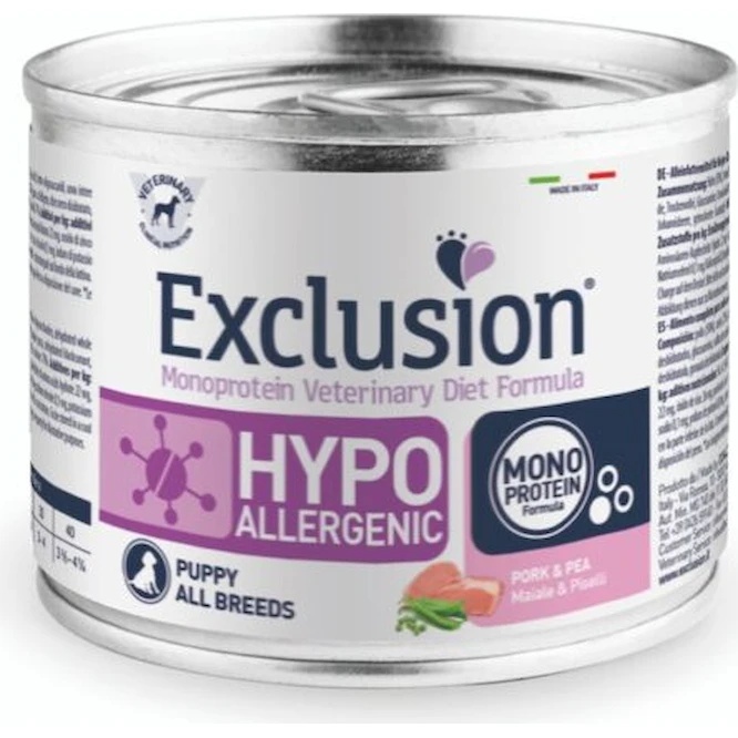 Hrană umedă pentru câini Exclusion Diet Hypoallergenic Pork&Pea Puppy All Breeds 200g