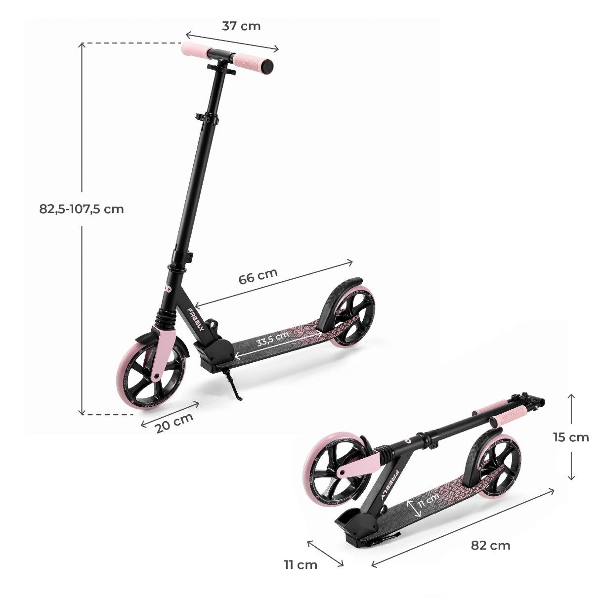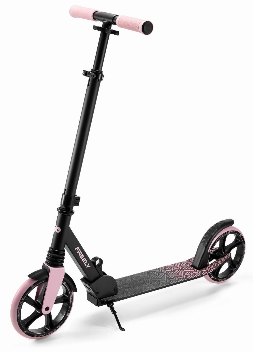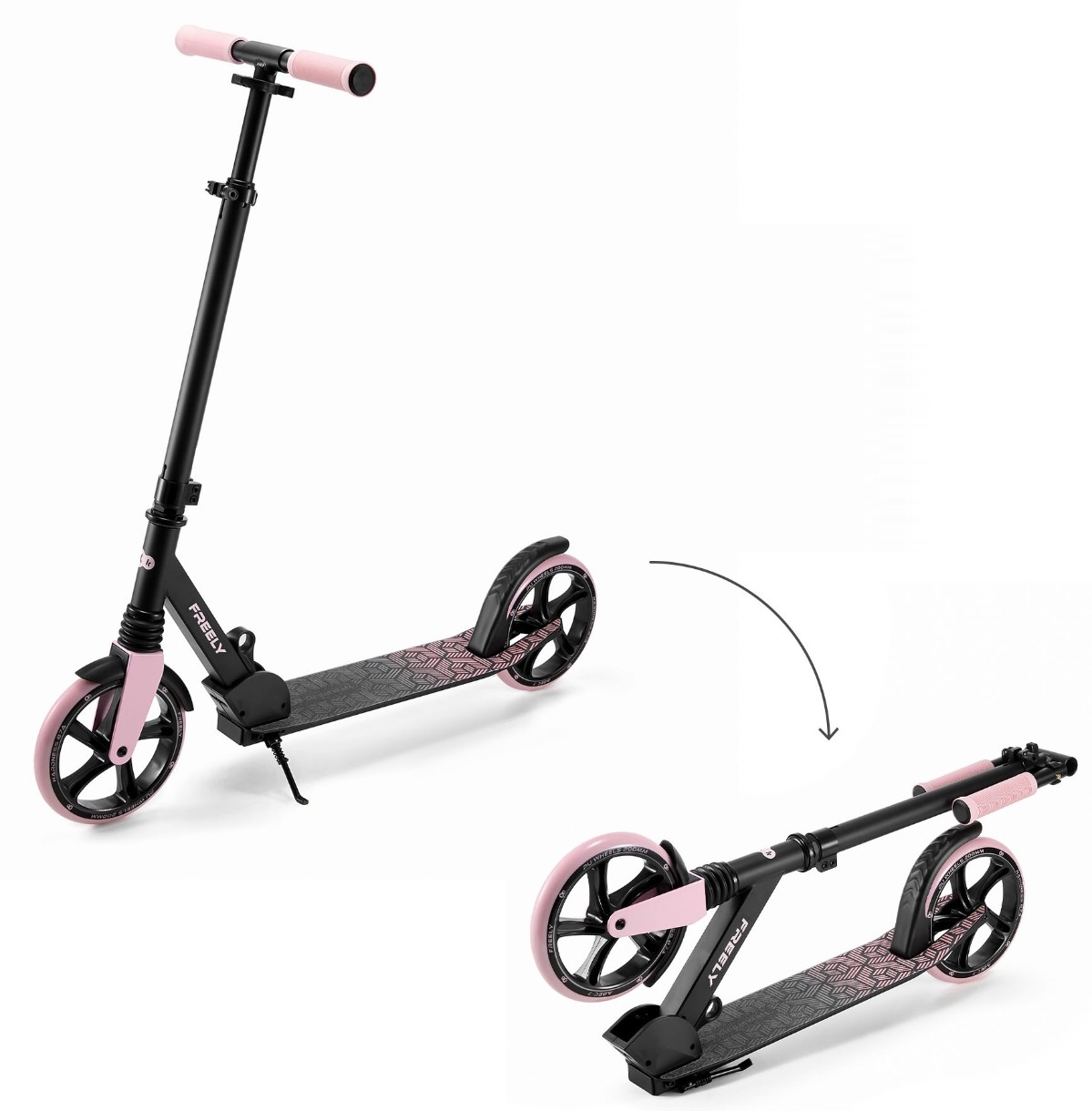 FREELY—o trotinetă pliabilă pentru întreaga familie! FREELY combină durabilitatea, confortul și stilul, fiind alegerea perfectă atât pentru copiii cu vârsta de 5 ani și peste, cât și pentru adulți. Cu designul său robust, mecanismul de pliere rapidă și capacitatea maximă de încărcare de până la 100 kg, FREELY este ideală pentru utilizarea zilnică și pentru aventuri pe două roți mai dinamice. Trotineta FREELY este echipată cu rulmenți ABEC-7 avansați și roți mari din poliuretan cu duritate 87A, cu un diametru de 20 cm, asigurând o călătorie excepțional de lină și o mobilitate fără efort pe distanțe lungi, cu un efort minim. Suspensia roților din față oferă confort suplimentar, protejând articulațiile utilizatorului de impact. Configurarea inițială ușoară este intuitivă, datorită designului atent al trotinetei și instrucțiunilor incluse. Trotineta vine aproape complet asamblată, așa că tot ce trebuie să faceți este să o desfaceți, să atașați mânerele la pini și sunteți gata de plecare.