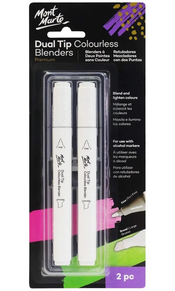 Aceste blendere cu vârf dublu au o formulă transparentă care amestecă și estompează urmele de marker cu alcool. De asemenea, pot fi folosite pentru a înmuia marginile și a reduce vizibilitatea urmelor nedorite.