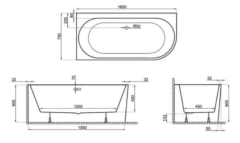 Specificații Cadă de baie Polimat Sola R 160x75 (S) (16777)