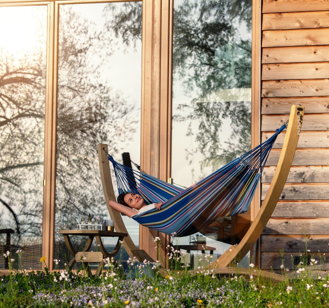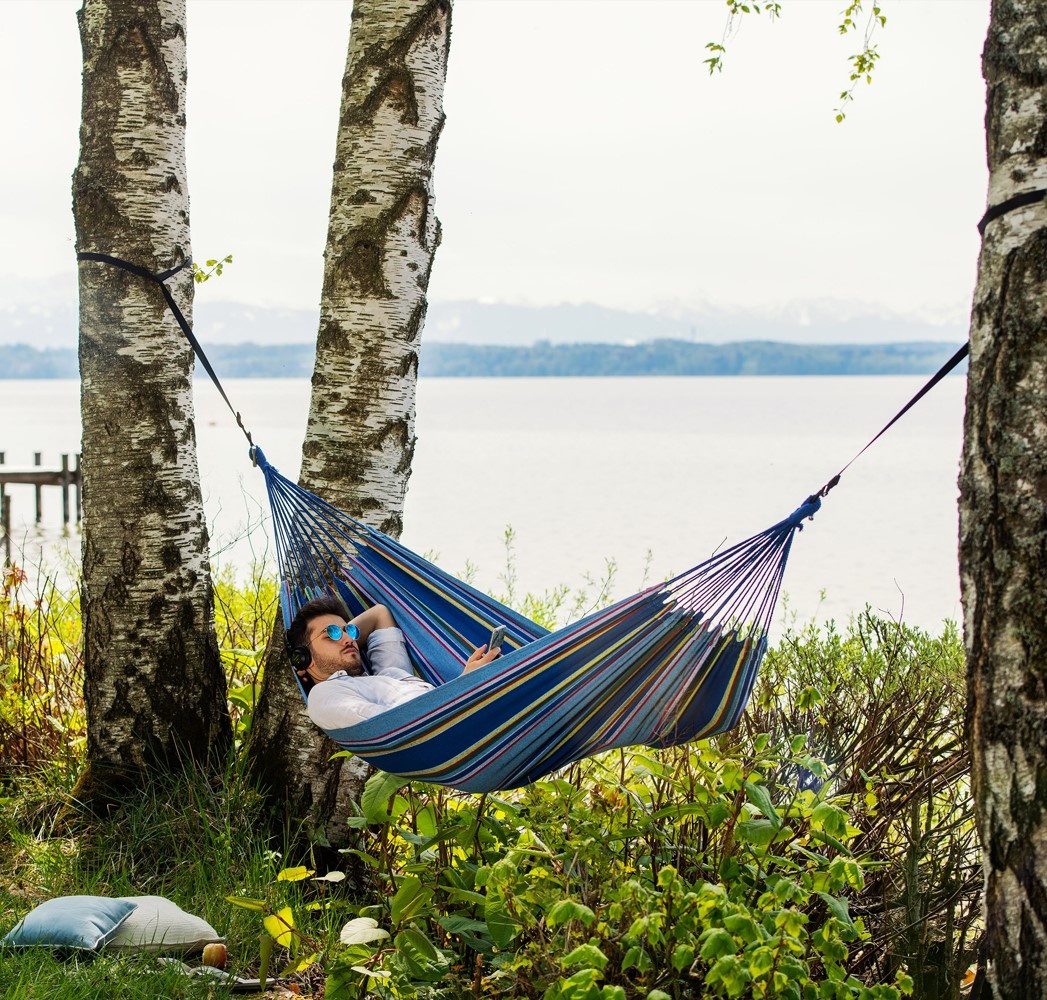 Acest model demonstrează că și un hamac mic poate fi extrem de confortabil. Hamacul poate fi fixat prin diferite sisteme de fixare de perete sau de copaci.