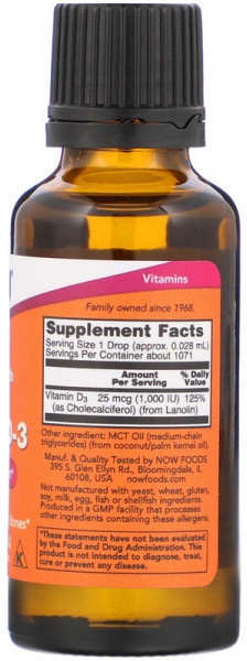 Vitamine NOW Liquid Vitamin D-3 1000МЕ 30ml