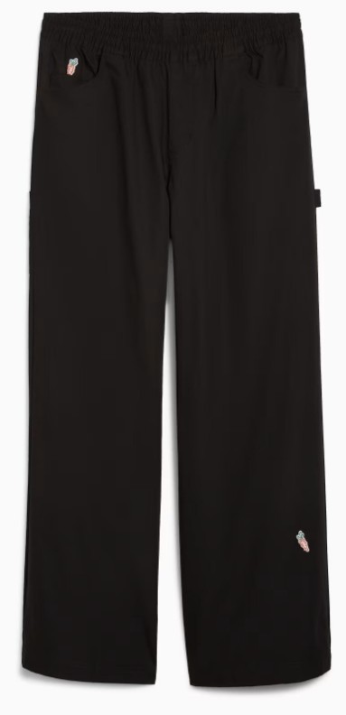 Aplicațiile de morcovi brodate haotic și o etichetă cusută PUMA x Carrots pe lateral fac acești pantaloni interactivi, reflectând conceptul colecției de a ascunde logo-ul iconic Carrot în diverse locuri, invitându-vă să-l descoperiți.