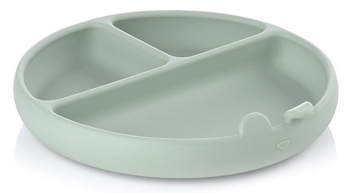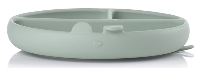 Design cu forme simple de animale, perfect pentru înțărcarea condusă de bebeluși (BLW). Poți folosi urechinele de pe farfurie ca suport de linguriță.