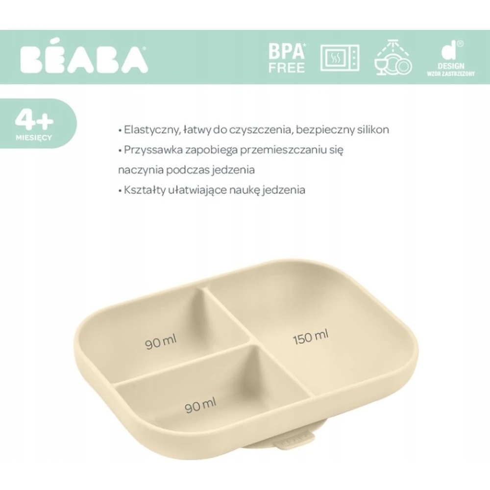 Farfurie pentru copii din silicon cu 3 secțiuni și ventuză Clay Beaba