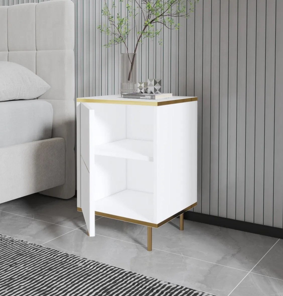 Noptieră Trendy Imaj White/White Marble/Gold 60x40x35cm GTR005896