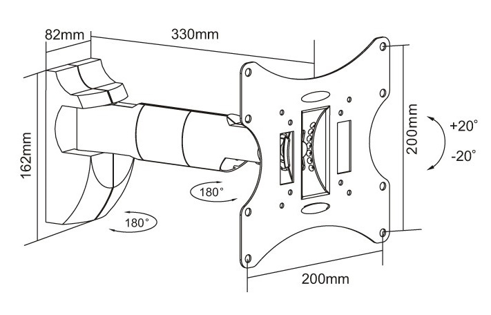 Standard VESA75x75, 100x100, 200x100, 200x200 mm