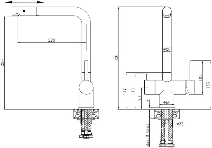 Înălțime pipă296 mm