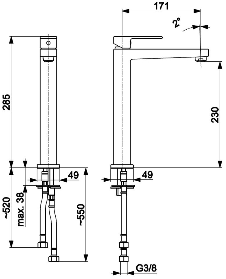 Înălțime pipă230 mm