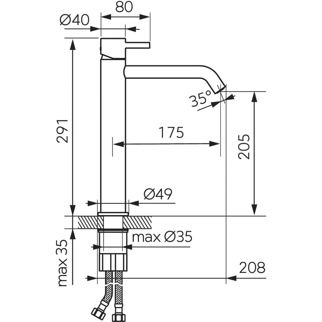 Înălțime pipă205 mm